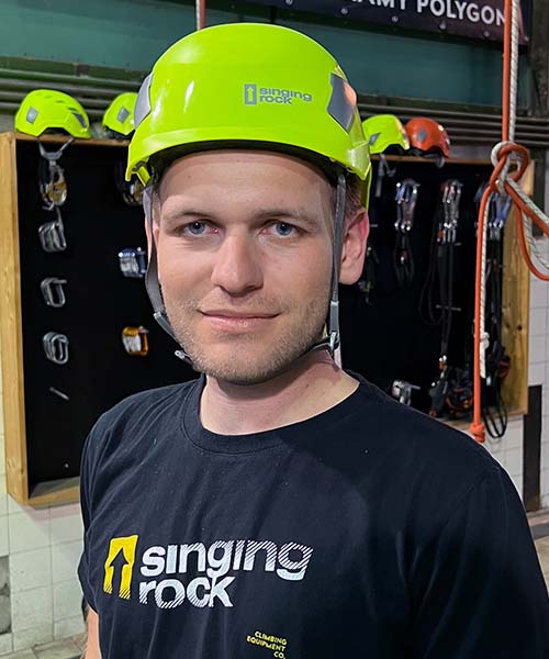 Jsem školitel na Polygonu Hlubina. Lezení jsem propadl v sedmnácti a tahle vášeň mě přivedla až k výškovým pracím u hasičů během studia požární ochrany. Dnes se věnuji hlavně výcviku dobrovolných hasičů a záchraně na laně. Neustále se chci zlepšovat – jak v technice, tak ve výuce. Když zrovna neškolím, rád lezu nebo tě naučím létat.